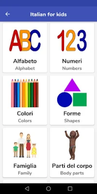 - Italian for Kids app is a way of learning Italian for kids or beginners. It makes learning Italian efficient and fun.