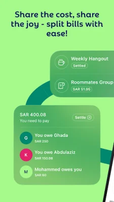 Qattah is an all-in-one financial management application that allows you to easily split bills and payments with friends and family, no matter where you are. With just a few taps, you can effortlessly divide expenses and keep track of who owes what. This feature is perfect for group outings, shared living expenses, and any other situation where you need to split costs with others.