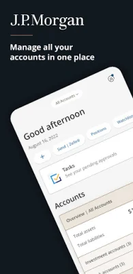 The J.P. Morgan Mobile app allows clients of J.P. Morgan Private Bank or J.P. Morgan Wealth Management to securely access their U.S. investment, banking, and credit accounts from anywhere at any time. This app offers a variety of features such as depositing checks, sending and receiving money with Zelle®, managing account security, and staying up to date with market research from experts in the field.