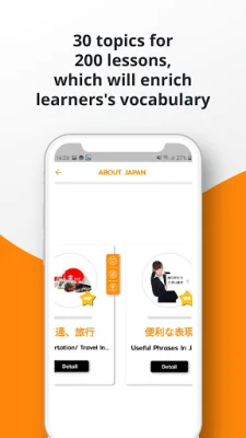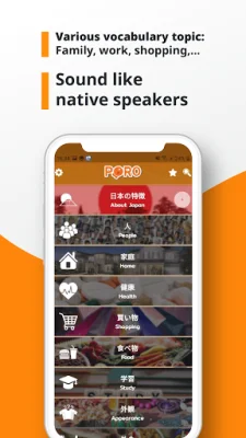 This application is designed for anyone who wants to improve their Japanese vocabulary. It offers over 6,000 words with pictures and native speaker pronunciation, making it suitable for all levels of learners. The words are divided into 10 main topics and 145 lessons, covering a variety of themes to help you significantly enrich your vocabulary. Whether you are just starting to learn Japanese or are looking to expand your vocabulary, this app has something for everyone.