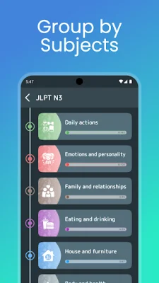 This application is designed to help users learn Japanese vocabulary through a variety of features. One of the key features is the smart spaced repetition (SRS) system, which uses scientifically proven review timing to boost memory and help users study less while retaining more information. This feature is especially useful for those preparing for the Japanese Language Proficiency Test (JLPT).