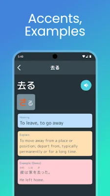 In addition, the app provides native-like Japanese accents for each word, allowing users to improve their listening and speaking skills. This feature is particularly helpful for those who want to sound more natural when speaking Japanese. By hearing and practicing with authentic accents, users can also improve their understanding of the language.