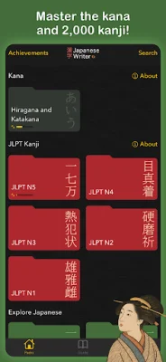 The application covers a wide range of Japanese characters, including hiragana, katakana, and over 2,000 Kanji from JLPT levels 5 to 1. This makes it a comprehensive tool for anyone looking to improve their Japanese writing skills. Whether you are a beginner or an advanced learner, Japanese Writer has something to offer for everyone.