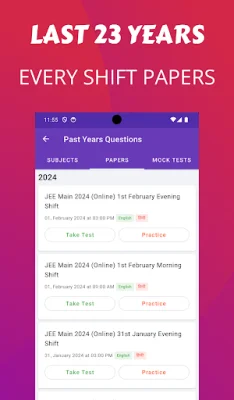 This app is an unofficial study tool for students preparing for the JEE exams. It is not affiliated with or endorsed by the NTA, IITs, or any JEE exam authorities. The app provides access to official and up-to-date information about the JEE exams, including JEE Main and JEE Advanced, through links to the official websites. In addition, it offers practice questions and mock tests based on previous years' exams, including papers in Hindi.