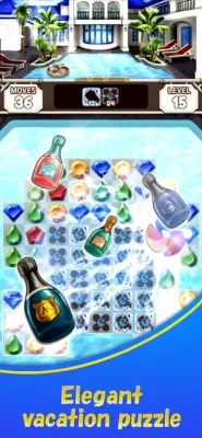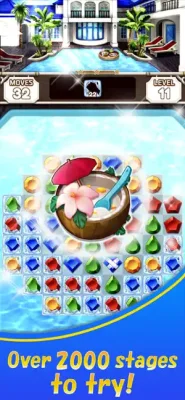 Jewel Resort: Match 3 is a popular puzzle game that can be played by people all over the world. The game involves matching three or more jewels of the same color to clear levels and progress through the game. The jewels and items in the game have a resort theme, providing a pleasant and relaxing experience for players. The main character, Maria, invites players to join her in spending luxurious time at a beautiful resort.