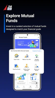 JM Pro is a comprehensive and secure demat app created by JM Financial Services. It is designed to make investing easy, flexible, and seamless for users. The app allows users to manage various investment options such as stocks, mutual fund SIPs, IPOs, and Margin Trading Facility, as well as track ETF stocks. Whether you are a beginner or an active trader, JM Pro offers smart tools and research-driven features to simplify the investing process.