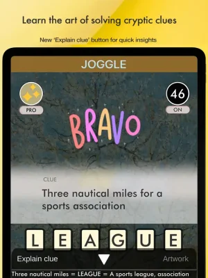Joggle is a word puzzle game that offers a unique twist on traditional crossword puzzles. It challenges players to solve clues by swapping two letters in a six-letter word to form the correct answer. With four levels of difficulty, Joggle caters to all types of players, from beginners to crossword pros. It also offers a variety of features, such as different clue types, a timer option, and the ability to earn coins for solving puzzles. These coins can be used for hints or to unlock harder levels. Joggle is not just a game, but also a tool for improving vocabulary and honing puzzle-solving skills. It even offers in-game support for those looking to learn how to solve cryptic puzzles. Joggle is perfect for ESL learners and teachers, as well as anyone looking to boost their brainpower and prepare for more challenging crosswords like those found in the NY Times or The Times of London.