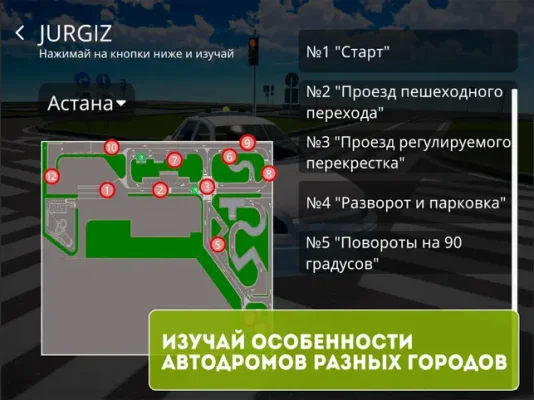 "Jurgiz" - это симулятор, который поможет вам успешно сдать практический экзамен на получение водительских прав в Казахстане. Он предлагает реалистичные условия, чтобы вы могли почувствовать себя на настоящем автодроме во время тестирования. Вы сможете пройти практические испытания и изучить особенности автодромов в разных городах.