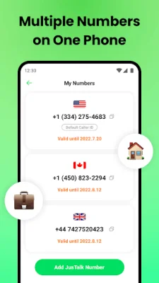 JusTalk 2nd Phone provides real local phone numbers in the US, UK, and Canada at affordable prices. You can choose from a variety of options for your second number, whether you want to keep your privacy, separate work and personal communications, or have a backup or burner phone. This app also offers low-cost international calls and texts, making it a great option for staying connected with others.