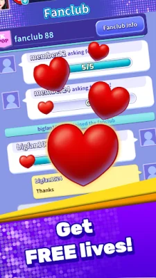 The Match-3 Puzzles application is a fun and colorful game where players can solve a variety of puzzles across different stages. Each stage presents unique obstacles and special items to make the game more challenging and exciting. The ultimate goal is to collect stars by successfully completing puzzles, with more stars being earned as players progress through more stages. One of the unique features of this game is the Idol Voting system, where players can use their collected stars to vote for their favorite K-Pop idols. This allows fans to come together and show their support for their idols while enjoying the game. The game also offers a community aspect, allowing players to connect with other fans and share their voting results. The game boasts various stages, with hundreds of exciting puzzle challenges to keep players engaged. Special items with a K-pop concept, such as drones, cameras, and spotlights, can be used to help players clear puzzles. The game also offers idol-themed stages and special events for players to enjoy. In addition to the gameplay, the game also has a reward system where players can earn daily rewards, invite friends, and receive special bonuses. With a wide range of popular K-Pop artists to choose from, including BLACKPINK, BTS, EXO, and more, players can support their favorite idols and make them shine brighter. To play the game, players must match 3 or more blocks of the same color to clear the puzzles. As they progress through the stages and successfully complete puzzles, they will earn stars. These stars can then be used to vote for their favorite idols. Players can also check their rankings and compare their voting results with other fans. The Match-3 Puzzles application is available for free download, allowing players to support their favorite K-Pop idols while having fun solving puzzles. So why wait? Start your journey now and make your idols shine brighter with your friends!