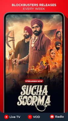 The app boasts an unbeatable content library, with a new and exclusive movie being added every week. These films include popular titles like Subedar Joginder Singh, Parahuna, Manje Bistre, Ardaas Karan, Son of Manjeet Singh, Cheta Singh, Sat Shri Akal England, and many more. The movies feature a star-studded cast, including Gippy Grewal, Ammy Virk, Kulwinder Billa, Gurpreet Ghuggi, Sonam Bajwa, Tania, Simi Chahal, Mandy Takhar, and Japji Khaira, ensuring that subscribers' entertainment needs are met.