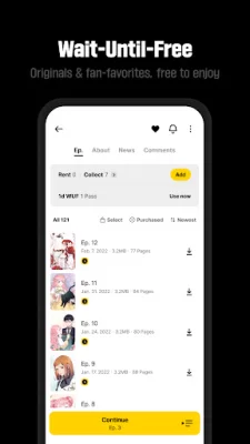 Discover immersive comics, novels, and books all in one convenient app. With this app, you can access a wide variety of hit originals for free using the Wait-Until-Free (WUF) feature. Plus, you won't want to miss out on the daily gifts of Cash and free Passes that are available.