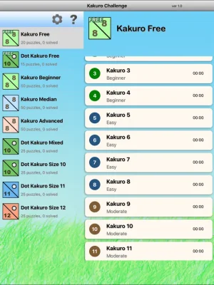 The game offers a variety of features to enhance the player's experience. There are 5 difficulty levels for standard Kakuro puzzles, allowing players of all skill levels to enjoy the game. Additionally, there are 3 different sizes for Dot Kakuro puzzles, providing even more variety and challenge.
