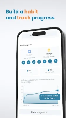 With just 10 minutes of dedicated learning per day, users can make significant progress in their understanding of the Quran. In fact, the app claims that users can understand 40% of the Quran in one week, 70% in one month, and 95% in one year. This personalized learning journey is tailored to each user's current understanding level and provides a customized learning plan.