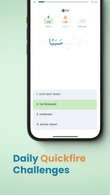The app also offers daily lessons and challenges, allowing users to learn new words and their Quranic context, as well as explore word usage throughout the Quran. It also utilizes active recall with spaced repetition, similar to how medical schools teach, to ensure that users retain what they have learned. Additionally, users can compete and connect with others, earning points and badges while staying motivated in their learning journey.