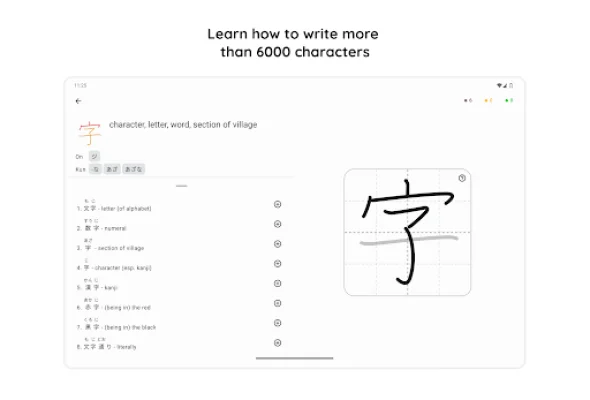 One of the main features of this app is its rich kanji coverage, with over 6000 characters available for study. In addition, there are many more words that users can learn, making it a comprehensive tool for mastering the Japanese language.