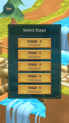 The game consists of 5 stages, each with over 1000 levels. Each stage focuses on a different level of difficulty, starting with the most basic and gradually increasing in complexity. Stage 1 covers 100 kanji, which is equivalent to the JLPT N5 level. Stage 2 covers 300 kanji, which is equivalent to the JLPT N4 level. Stage 3 covers 650 kanji, which is equivalent to the JLPT N3 level. Stage 4 covers 1000 kanji, which is equivalent to the JLPT N2 level. And finally, Stage 5 covers 2000 kanji, which is equivalent to the JLPT N1 level.