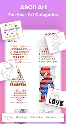 Unleash your creativity with the app's diverse range of text effects, including a comprehensive collection of ASCII art. You can craft intricate designs and patterns to match your mood and message. The app also offers a dedicated kaomoji collection for those special moments, allowing you to personalize your messaging experience with Japanese emoticons and cute kaomoji.