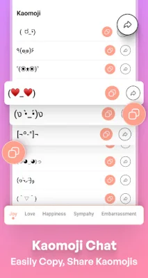 With the emoticon maker and fancy text symbols, you can get even more creative by designing your own Japanese emoticons and adding a personal touch to your messages. The app's extensive library of text faces, emoticons, and fancy text symbols ensures that you always have the right emoticon for every moment. Overall, Kaomoji is the ultimate destination for all things text art and emoticons, providing a fun and original way to express yourself.