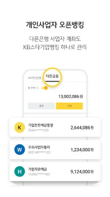 새로워진 내용으로는 개인사업자 고객의 경우 타행이체 수수료 전액이 면제되고, 비대면 계좌/인터넷뱅킹 One stop 신규가 더욱 간단하고 쉬워졌습니다. 또한 매일 우리 회사의 자금현황을 한눈에 볼 수 있는 자금보고서를 확인할 수 있고, 전자세금계산서 발급도 손쉽게 가능합니다. 또한 증권, 카드, 손해보험 등 KB금융그룹의 다양한 서비스를 하나로 연결하여 관리할 수 있습니다. 입출금거래부터 꼭 필요한 금융정보까지, KB스타기업뱅킹의 다양한 알림을 한 눈에 확인할 수 있습니다. 또한 24시간 365일 언제 어디서나 이용할 수 있으며, 다른 은행에 있는 계좌까지 한번에 확인할 수 있는 오픈뱅킹과 평생 무료로 부동산 임대관리하는 KB임대관리비서도 이용할 수 있습니다.
