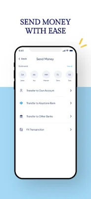 The app offers a range of features to make managing your accounts and cards easier. You can view all your account balances and status in one place, block lost or stolen cards, and retrieve transaction receipts. The app also allows you to send money to your own account, other Keystone accounts, and other banks, as well as to phone numbers and multiple beneficiaries. You can also make transfers to foreign accounts.
