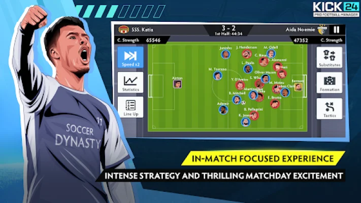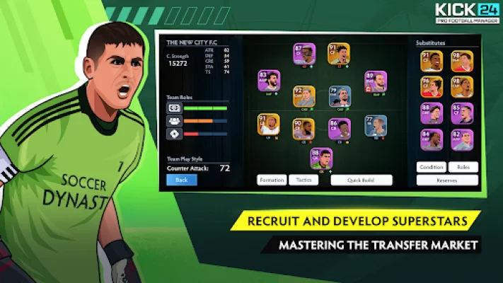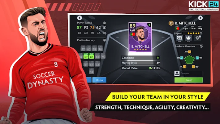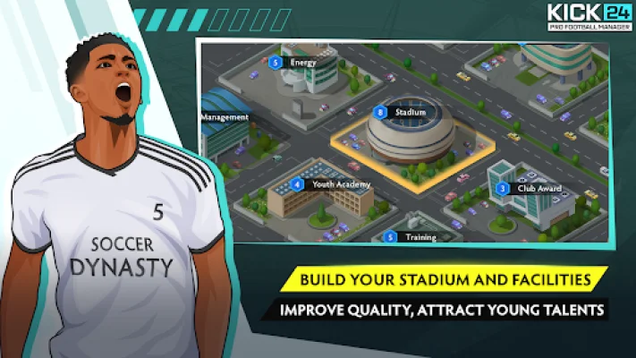 KICK25 is an exciting football management game that allows players to build their own dream team and compete against other elite players from around the world. With stunning graphics and a variety of features, KICK25 brings the world of football right to your fingertips. As a football manager, you have the freedom to create your own unique style of football. Whether you prefer an offensive, defensive, or balanced approach, it's all up to you. With KICK25, you can build your team and lead them to victory in top tournaments and leagues. One of the key responsibilities of a football manager is to find and develop talented players that fit their football philosophy. In KICK25, you can search and recruit the best players from the Transfer market to strengthen your team and compete for titles. Your football philosophy will be put to the test as you strive to become a champion. KICK25 also allows you to bring your football philosophy to the world by competing against other players and climbing the leaderboards. With various tactics, formations, and kicking styles, you can prove your skills and dominate the competition. In addition to the exciting gameplay, KICK25 also offers great graphics and the ability to build your team's facilities. With over 9000 talented players to choose from, the possibilities are endless. Before downloading the game, please make sure you have enough free space on your device as approximately 2GB is required for installation. It is also recommended to use a Wi-Fi connection for the download. While the game is free to play, there is the option to purchase additional content and in-game items with real money. Stay updated and connect with other players through KICK25's Facebook Fanpage at https://www.facebook.com/ksw.kickpfm. Join the community and show off your football management skills!