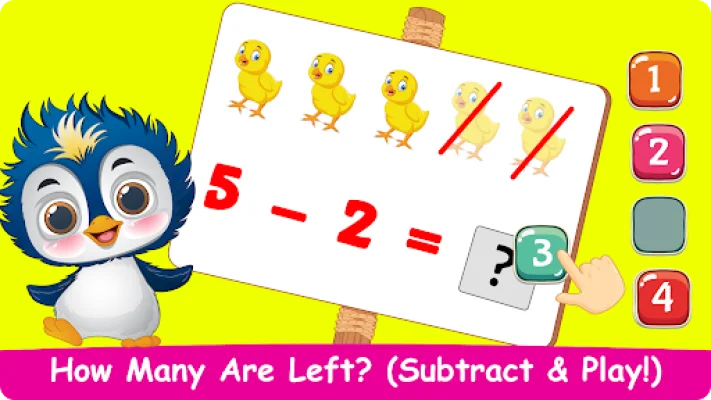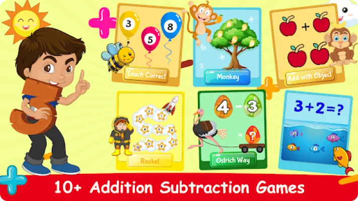 With fun number games, shapes, cool animations, graphics, and cheerful sounds, our app ensures that children won't get bored while practicing addition and subtraction. These multiple games keep kids engaged and motivated to continue learning.
