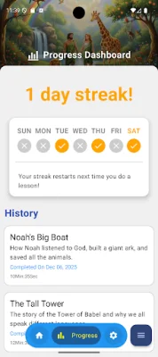 The app also offers a Daily Streak feature, which encourages children to make listening to Bible stories a part of their daily routine. As they listen every day, their streak grows, motivating them to continue their journey of faith.