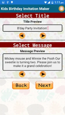 Not sure what to write on your invitation? No problem! Our app offers pre-loaded messages for you to choose from, or you can write your own personalized message. You can also add important details such as the party title, date, time, and venue. Once your invitation is complete, you can easily share it via email, print it, or download it to your mobile phone.