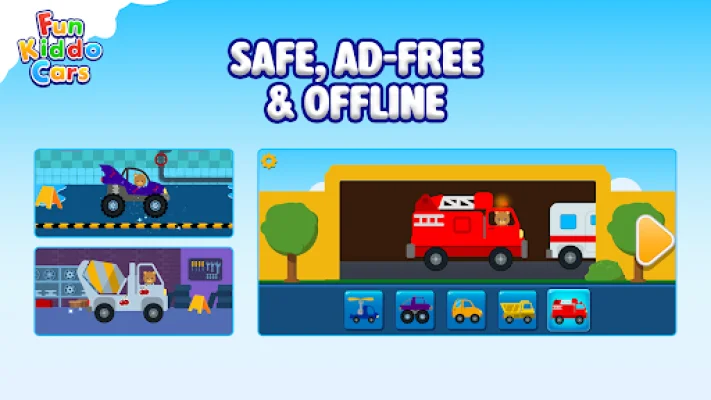 Fun Kiddo Cars is an educational car game for toddlers and preschool children ages 2 and up. It offers a safe and ad-free experience with various activities such as car driving, racing, wash, and repair. This app is perfect for parents looking for offline car games that are suitable for young children.