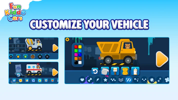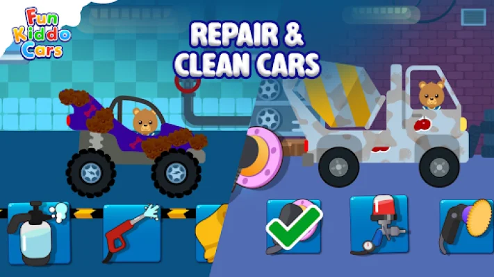 Fun Kiddo Cars is not just a simple racing game, it combines multiple car games in one app. Children can enjoy car driving, racing, car wash, and car repair activities, as well as customize their vehicles with different wheels and stickers. They can also drive in different environments such as sunny, rainy, snowy, and nighttime.