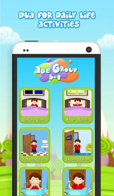 The duas are divided into three age groups, making it suitable for children of different ages. Each group has a list of duas specifically chosen for that age group. The app also includes a Full Dua tab, which displays the complete dua with English translation and transliteration. This makes it easier for children to understand and memorize the duas.