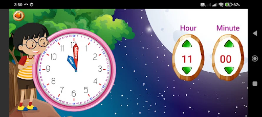 The app also includes an interactive quiz feature that allows kids to put their knowledge to the test. The quizzes are designed to reinforce their learning by asking them to identify different times shown on the clock. The quiz adapts to the child's learning pace, making it suitable for various age groups and skill levels.