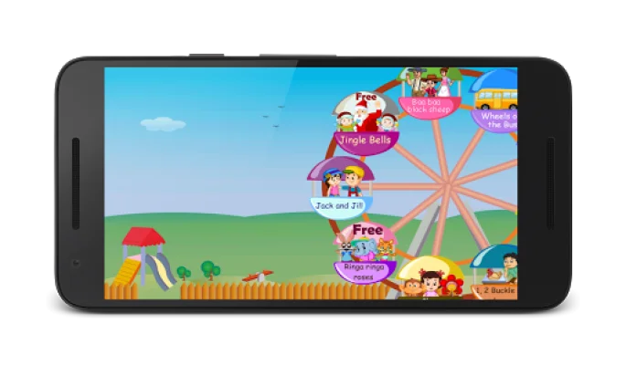 The start-up interface of the app features a Ferris wheel with tap-sensitive icons for each of the nine nursery rhymes. This adds an element of excitement and interactivity for children as they can choose which rhyme they want to watch and sing along to. The lyrics are also displayed in sync with the music, helping children to follow along and learn the words to the nursery rhymes.