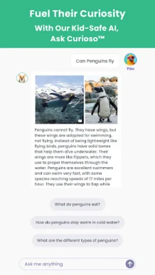The app's interactive features, such as quizzes, challenges, badges, and games, make learning even more enjoyable and motivating for kids. They can also dive deep into their favorite topics through the interactive Discovery Zones. Additionally, Curioso offers an exclusive feature called Ask Curioso, where children can ask factual questions and receive factual answers from the app's vetted, age-appropriate books.
