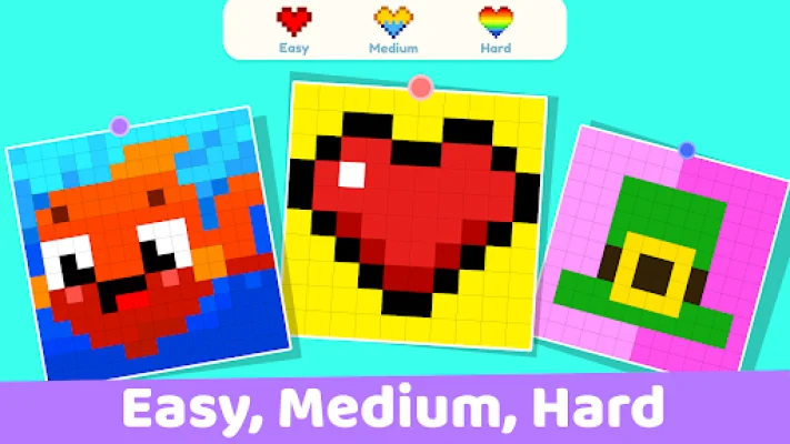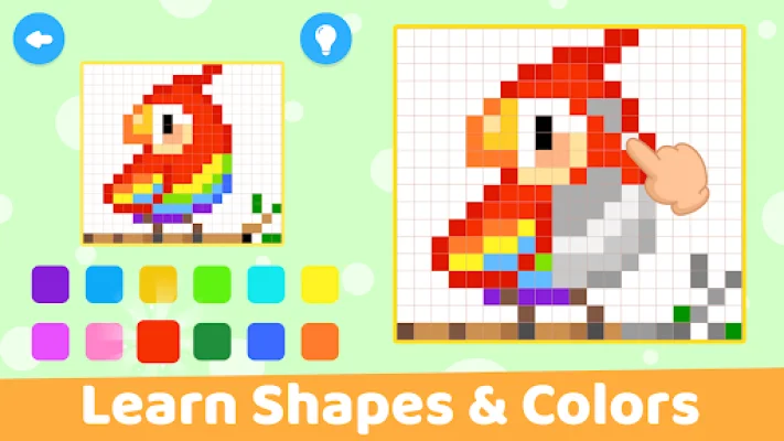 As children progress through the levels, they can unlock new pixel art coloring templates and tangram puzzles, providing a fun and challenging experience that promotes learning and cognitive development. This app is perfect for kids who love coloring, puzzles, animals, matching games, and brain games. It offers a safe, educational, and fun way for children to explore, learn, and grow through creative play and smarter screen time. Start your child's creative learning journey today by downloading Kids Pixel Art Coloring & Puzzle Games!