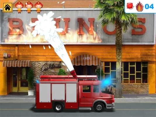 In the third game, your child can be a hero and a firefighter by extinguishing fires with the powerful fire hose. This game teaches bravery and quick thinking as your child taps on the fires to put them out.