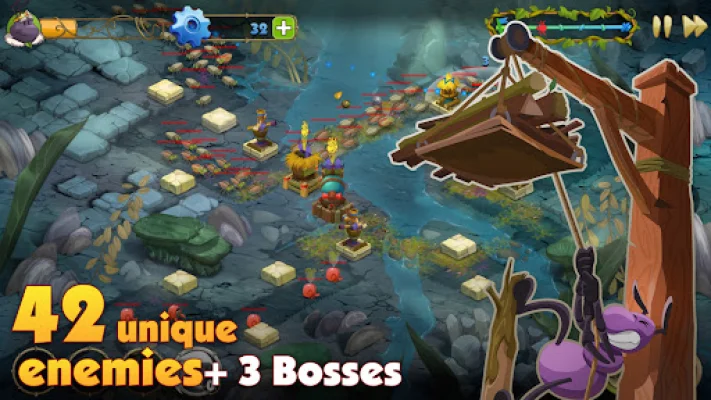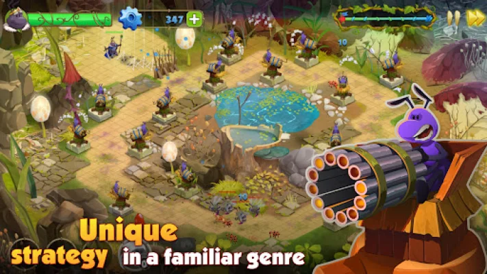 But fear not, as you can improve Karl's gear and unlock new abilities as you progress. Utilize a variety of different turrets driven by ants, with four kinds of towers to choose from. Each tower features several upgrades, opening up new tactical possibilities and allowing you to craft a unique strategy for each level.