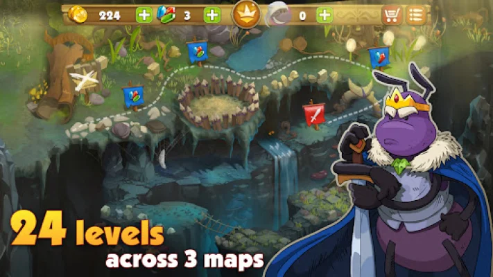 With its fun and strategic tower defense gameplay, "King of Bugs" offers hours of entertainment. The game also features author's music to enhance the gaming atmosphere and make the experience even more immersive. So gather your ant mercenaries and deploy them in towers to make them even more powerful as you defend your ant kingdom and lead Karl and his loyal companions into the ultimate clash of bugs and ant-defenders. Are you ready to become the "King of Bugs"?