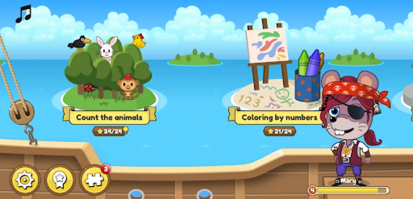 This educational math game is designed for children in grades K-3 and offers a variety of fun and engaging activities and puzzles. The game allows players to choose a character and travel to different islands, where they will encounter challenges such as counting animals, matching numbers, and completing patterns. As they progress through the game, players can earn stars and level up their character, as well as collect medals and puzzle pieces for additional rewards and motivation.