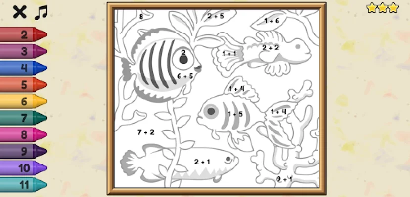 The game offers a wide range of categories to keep children engaged and learning, including coloring by numbers, counting animals, matching numbers, and completing patterns. There is also a memory matching game, which helps improve cognitive skills and memory retention.