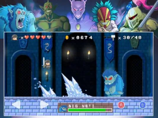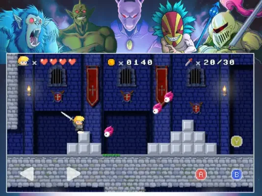 The game's controls have been carefully designed to provide a simple and useful touch control experience, making it perfect for a platform game. As players progress through the adventure, they can collect gold to upgrade their equipment and defeat more powerful enemies. The kingdom of Arcadia is full of secrets, and players can find them by hitting walls, some of which are destructible. These secrets can lead to finding weapons, coins, and hearts, and there are a total of 20 hidden secrets to discover throughout the game.
