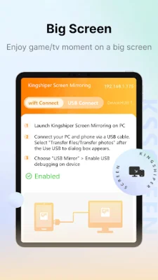 The Kingshiper Screen Mirroring app is a useful tool that allows users to mirror their Android or iOS device screens onto their PC. This can be done through various methods such as scanning a QR code, inputting a PIN code, or using a USB cable. By using this app, users can easily control and mirror multiple devices on one computer, making it convenient for presentations, online teaching, and even live streaming mobile games.
