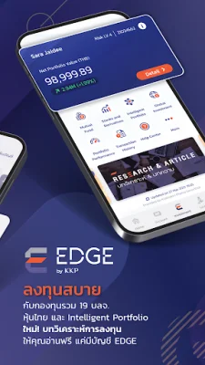 Invest with EDGE to enhance your investment experience. You can invest in Thai stocks, foreign stocks, bonds, mutual funds, and over 50 exchange traded funds from around the world. Get timely investment advice in every situation. Opening an online investing account with EDGE gives you access to a real-time dashboard. Buying, selling, and switching funds is made easy. The Intelligent Portfolio is designed by experienced fund managers from Kiatnakin Phatra Financial Group, who have been providing services for over 50 years.
