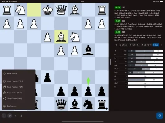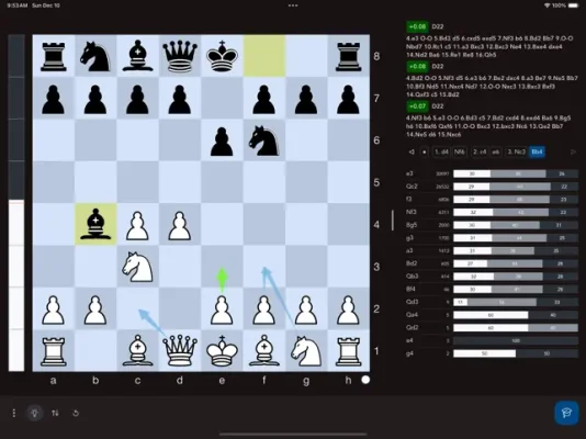 The app's elegant evaluation tools, such as the principal variation display, score indicator, and evaluation bar, offer advanced insights in a user-friendly and visually appealing layout. These tools provide real-time metrics and predictions, giving you a deeper understanding of the game. The app's sleek design ensures that these tools do not overwhelm the aesthetic appeal of the app.