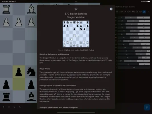 The app also boasts an extensive opening explorer, with a vast database of chess positions and statistics presented in a visually attractive format. This feature is designed for both information and visual enjoyment, making it easier for users to explore and analyze different openings.