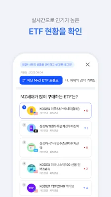 ETF NOW에서는 실시간으로 인기가 높은 ETF 현황을 확인할 수 있습니다. 또한, 투자 MBTI 테스트를 통해 자신의 투자 성향을 파악할 수도 있습니다.