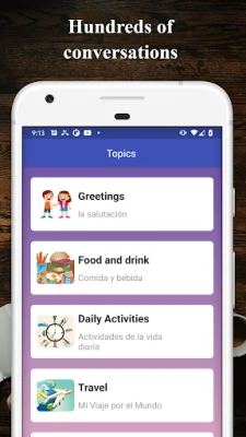 The app includes over 100 Korean conversations covering 9 categories, including greetings, food and drink, daily activities, travel, family, hobbies, shopping, work, and society. This allows users to not only learn individual words, but also how to use them in real-life situations.