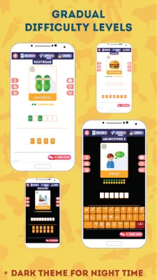 The app does not require a permanent internet connection, making it convenient for users to learn on the go. It also has a built-in dictionary to track progress and a game called "True or False" to review past material. Additionally, there are special lessons for favorite, difficult, old, and random words, as well as flexible sound settings for music, speaker, and effects.