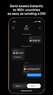 The payment process on this app is designed to feel like a chat. Users can pay their friends using their unique @Kraktag username, similar to sending a direct message. The app also allows users to share animated paylinks with memes and emojis, making the payment process feel more like texting than banking. The chat-like flows also make complex financial tasks simple, such as requesting money or sending payment reminders.